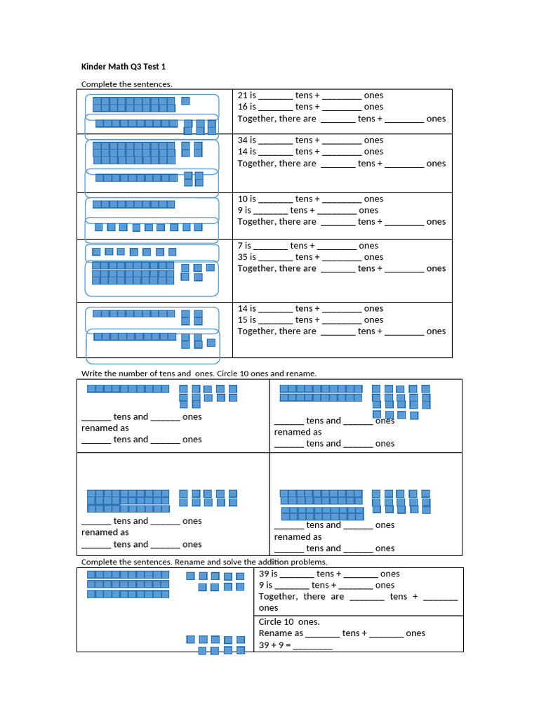 ______ tens and ______ ones ______ tens and ______ ones