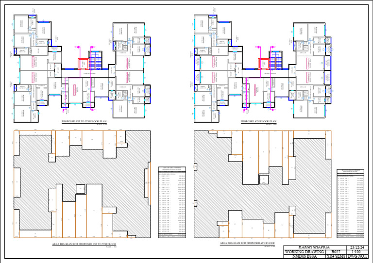 AREA DIAGRAM FOR PROPOSED 1ST TO 5TH FLOOR