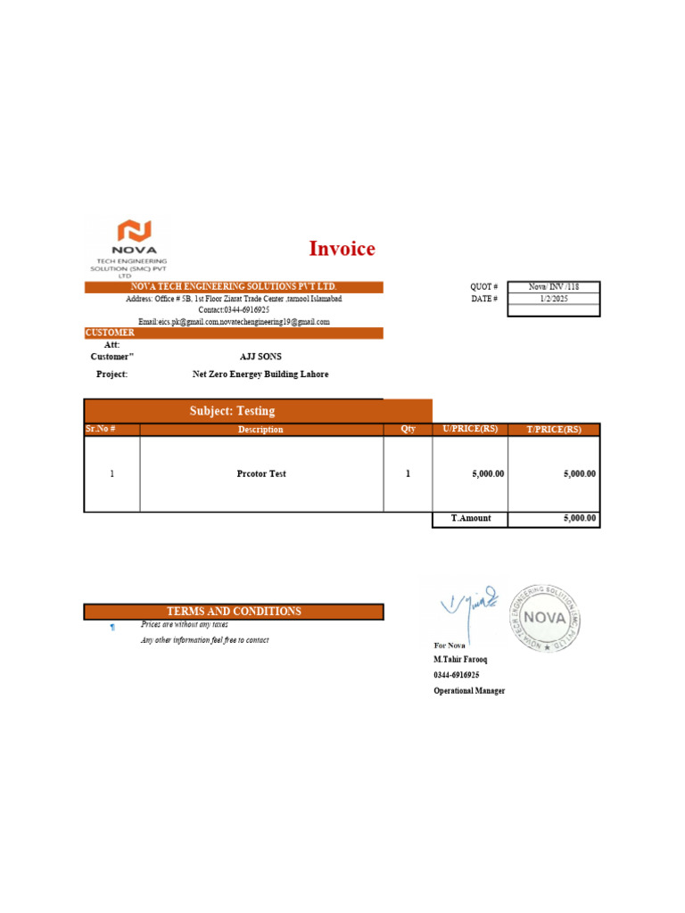 NOVA TECH ENGINEERING SOLUTIONS PVT LTD. QUOT # Nova/ INV /118