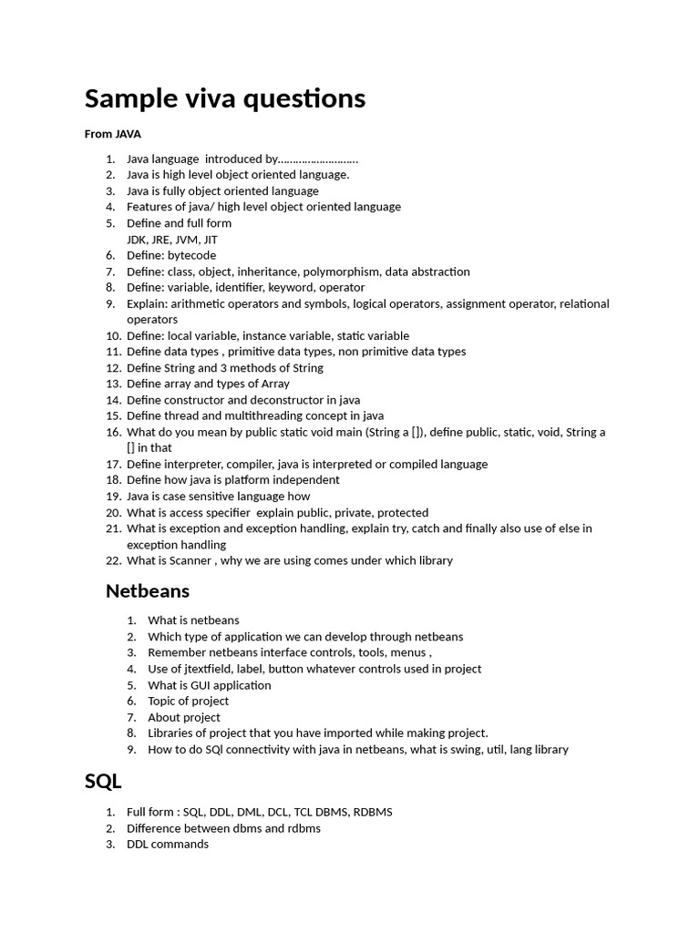 Sample viva questions