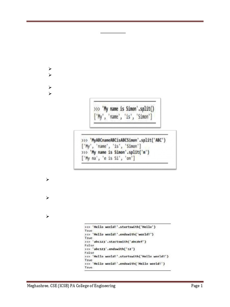 2. Explain Python string handling methods with examples: join(), startswith(),rjust(),strip(),rstrip()