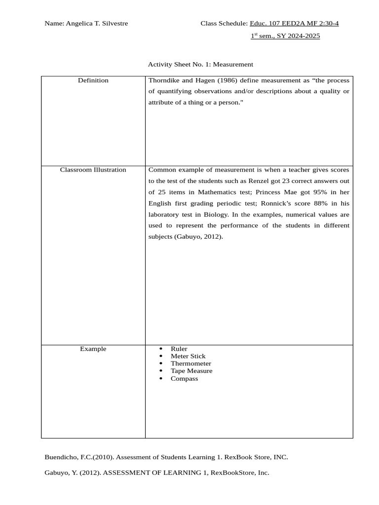 Name: Angelica T. Silvestre Class Schedule: Educ. 107 EED2A MF 2:30-4