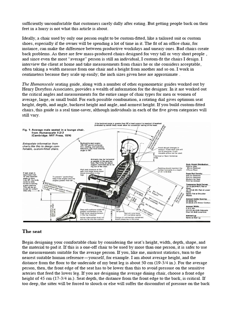 height, depth, and angle, backrest height and angle, and armrest height. If you build custom-fitted