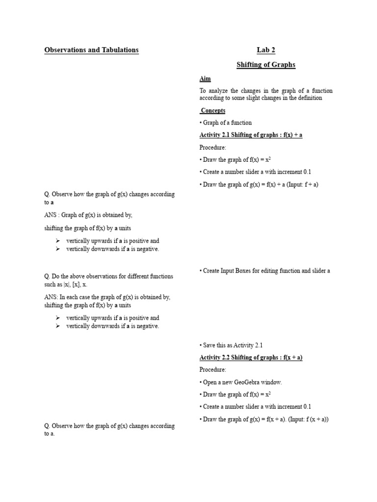 • Draw the graph of g(x) = f(x) + a (Input: f + a)