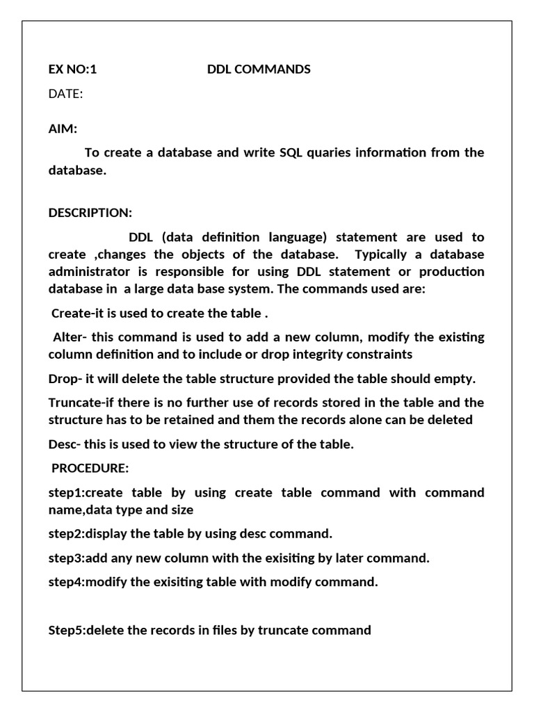 SQL>CREATE Table student(studname char(20),studid varchar2(10),studdept