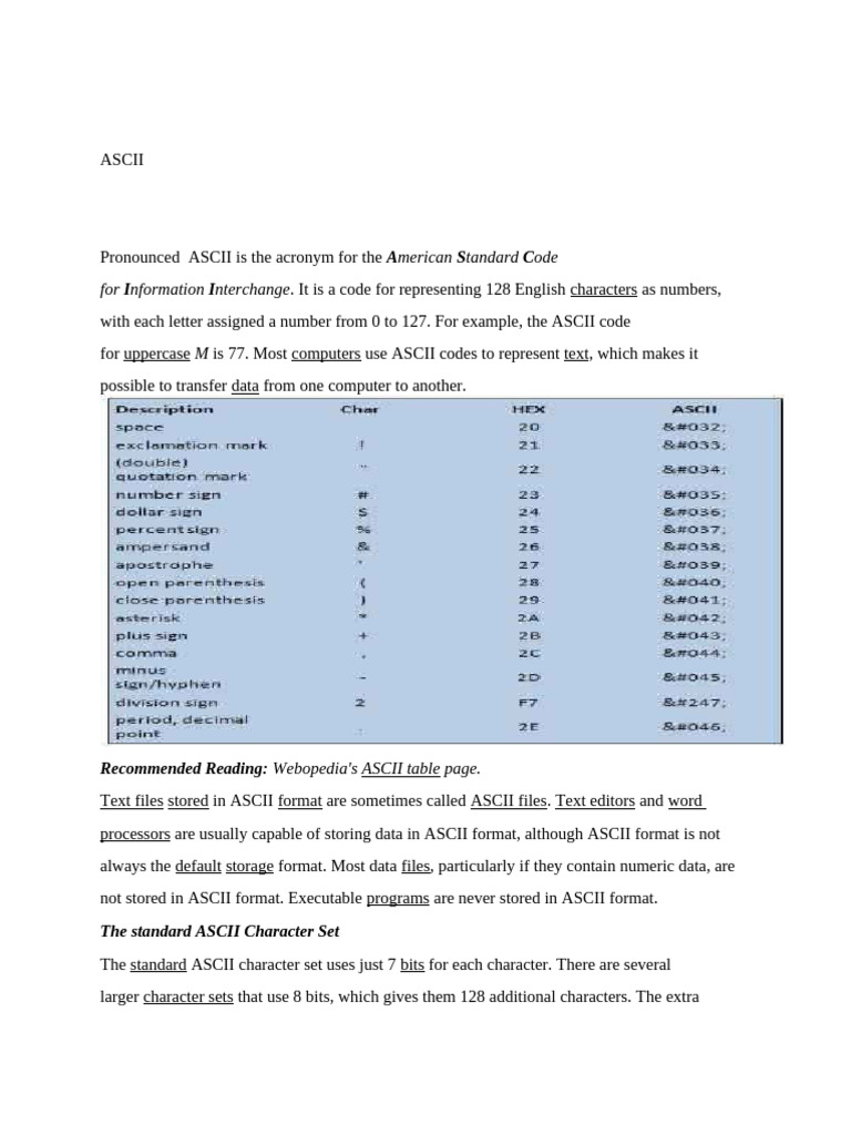 Recommended Reading: Webopedia's ASCII table page.
