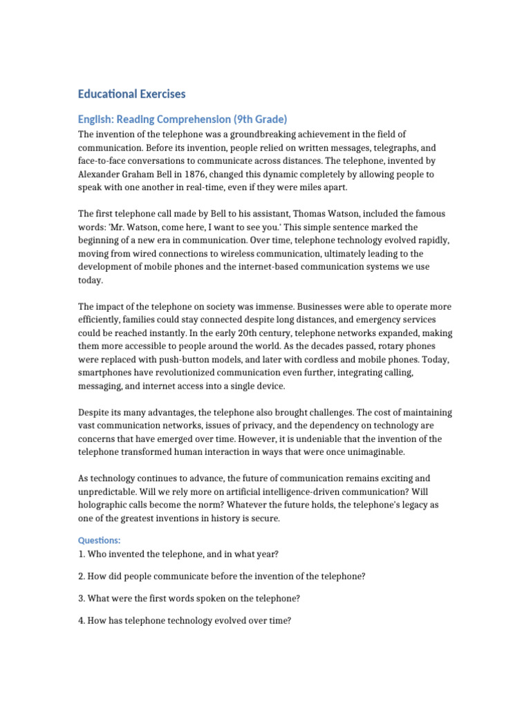 10. In your opinion, what is the most significant impact of the telephone on society?