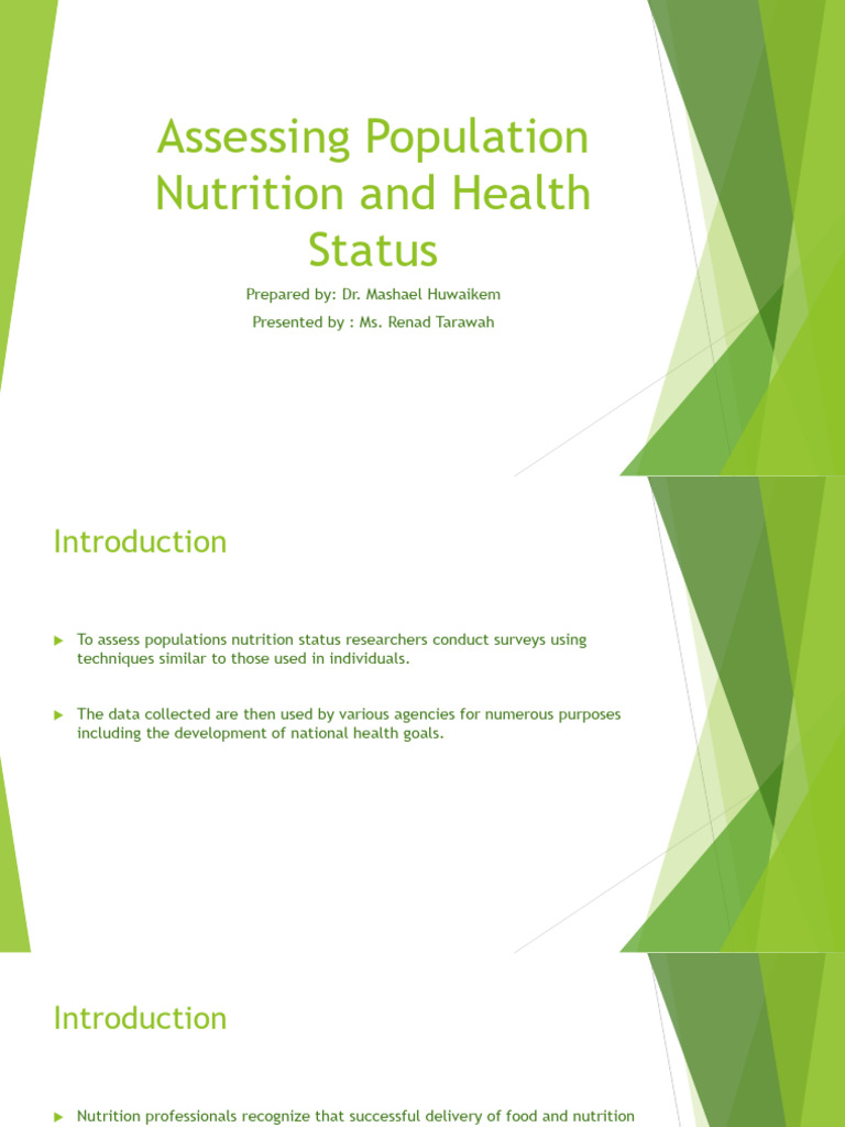 To assess populations nutrition status researchers conduct surveys using