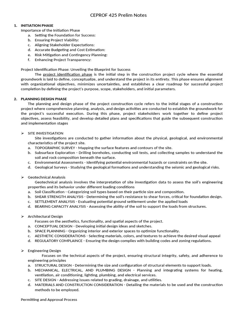 objectives, assess feasibility, and develop detailed plans and specifications that guide the subsequent construction