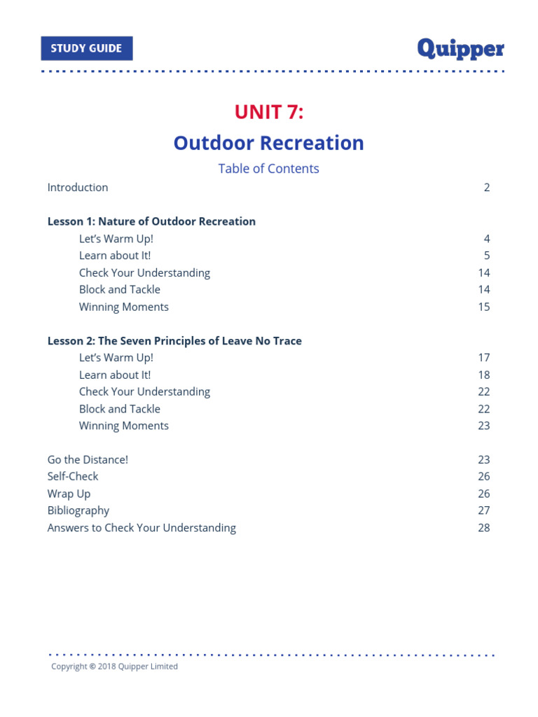 In this unit, different outdoor recreational activities will