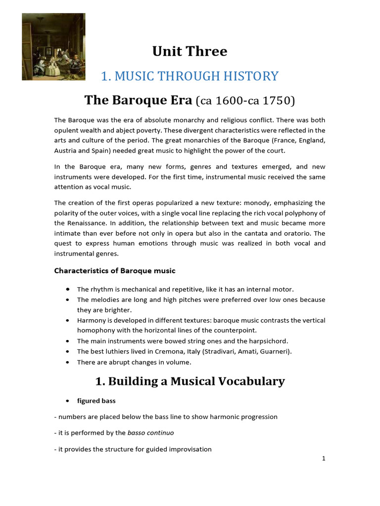 Harmony is developed in different textures: baroque music contrasts the vertical