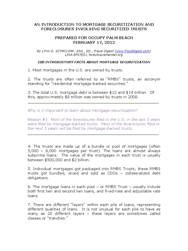 100 INTRODUCTORY FACTS ABOUT MORTGAGE SECURITIZATION