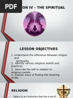 Objective Experience. There is usually a greater focus Subjective Experience. Spirituality is an inward journey