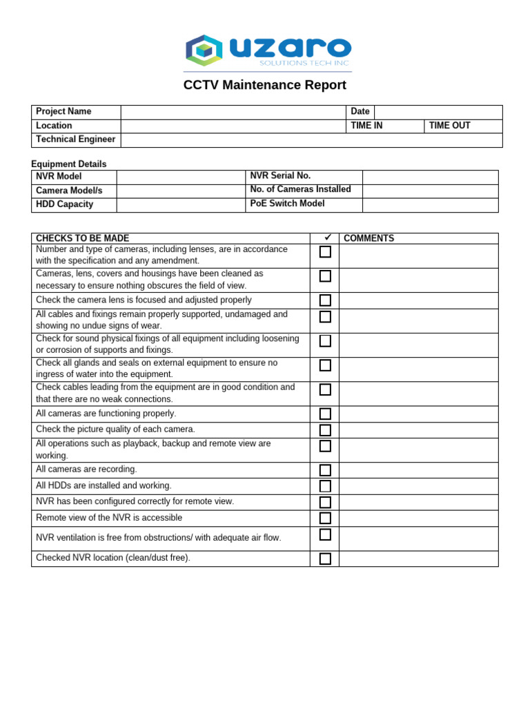CCTV Maintenance Report