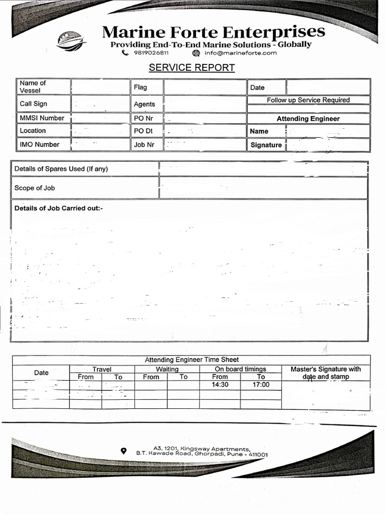 Travel Waiting On board timings Master's Signature with