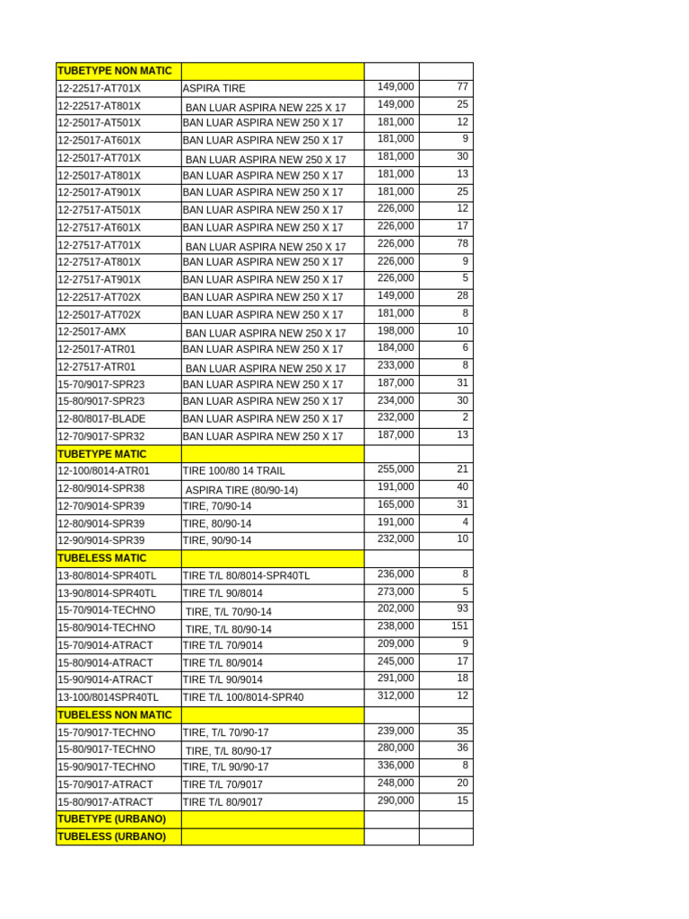 12-25017-AT801X BAN LUAR ASPIRA NEW 250 X 17 181,000 13