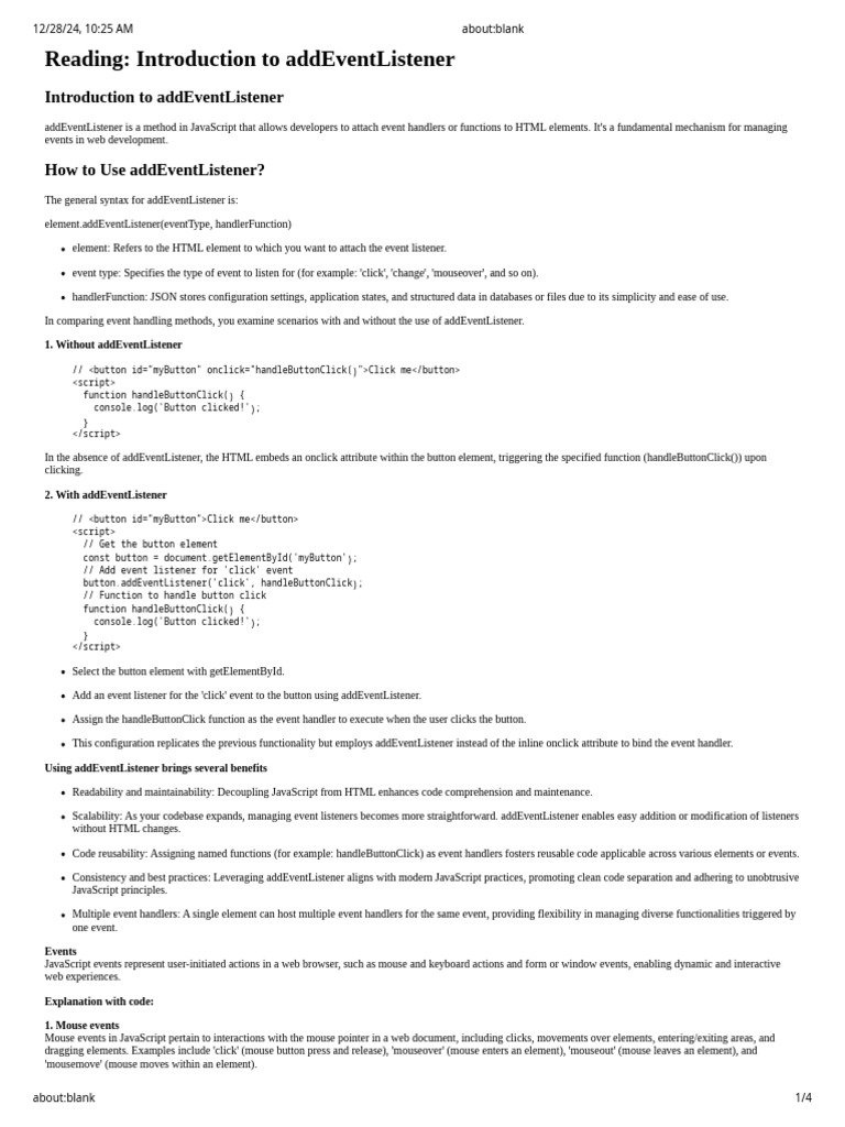 Reading: Introduction to addEventListener