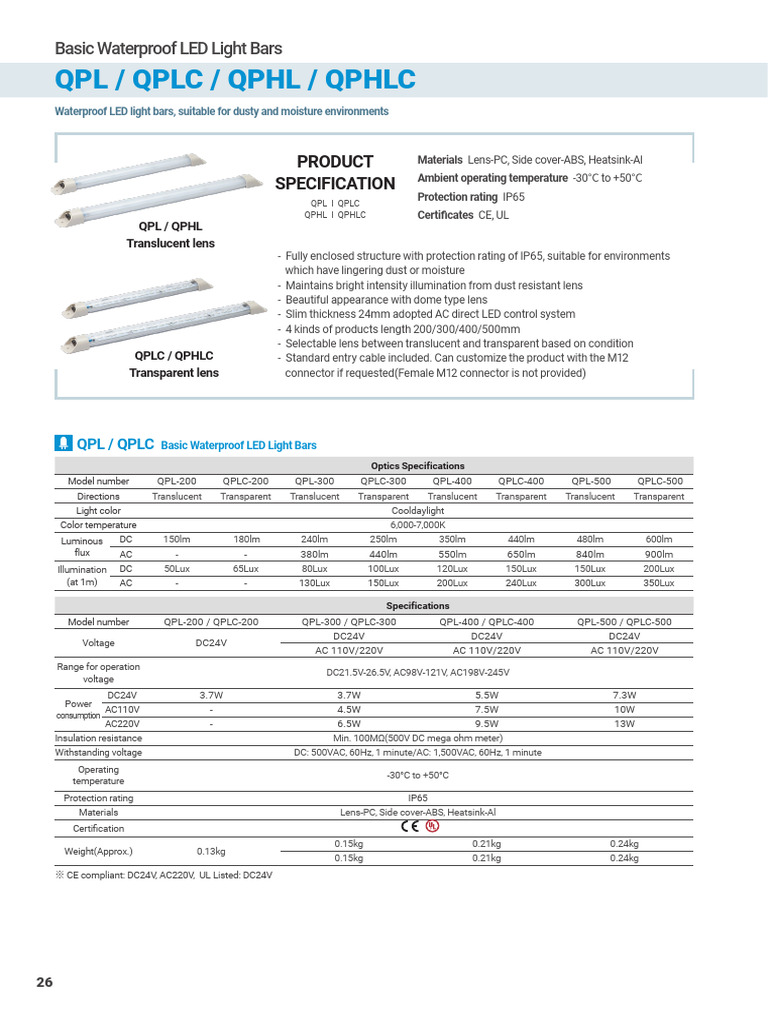 Model number QPL-200 QPLC-200 QPL-300 QPLC-300 QPL-400 QPLC-400 QPL-500 QPLC-500