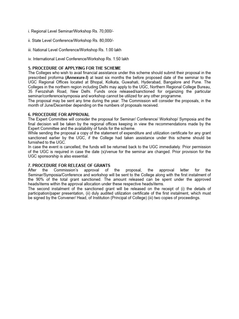 Seminar/Symposia/Conference and workshop will be sent to the College along with the first instalment of