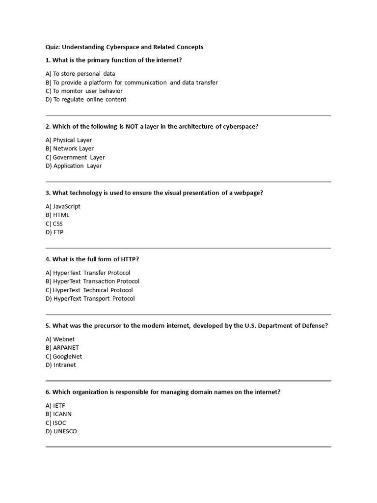 Quiz: Understanding Cyberspace and Related Concepts