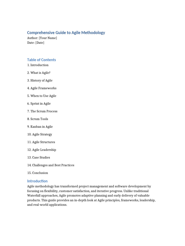 Comprehensive Guide to Agile Methodology