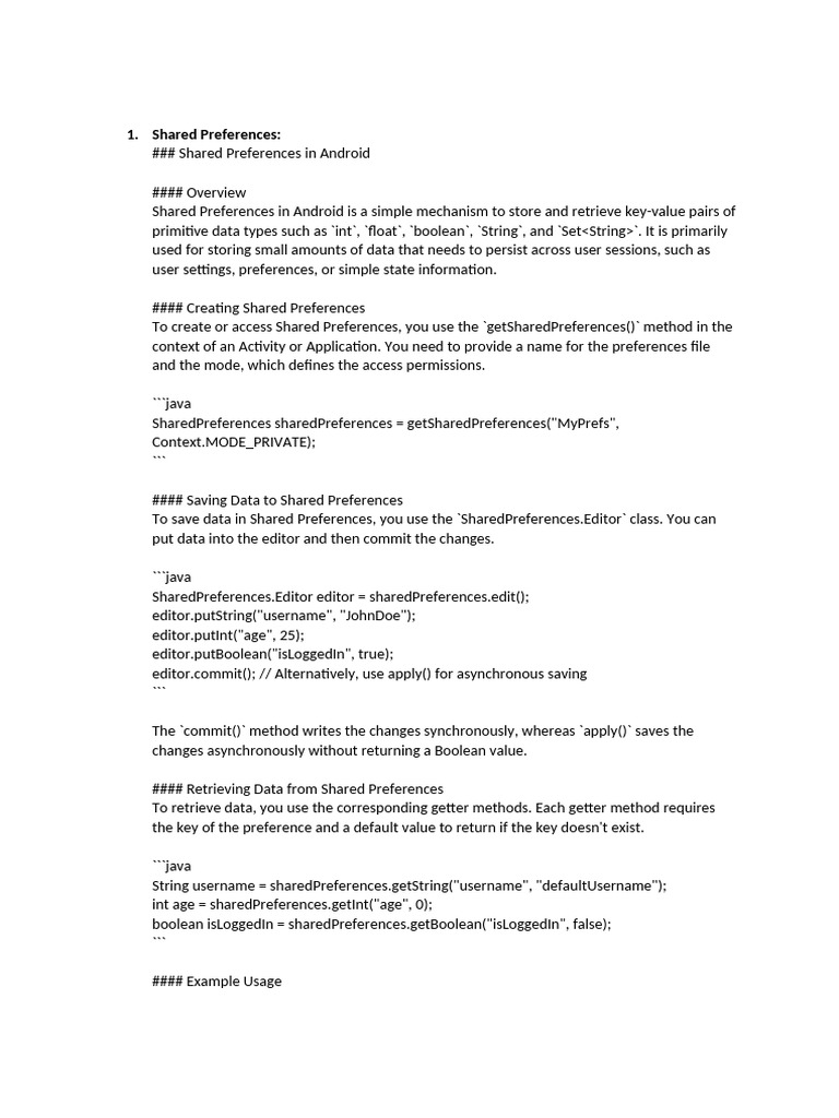 - **Lifecycle**: Data stored in Shared Preferences is persistent across application restarts,