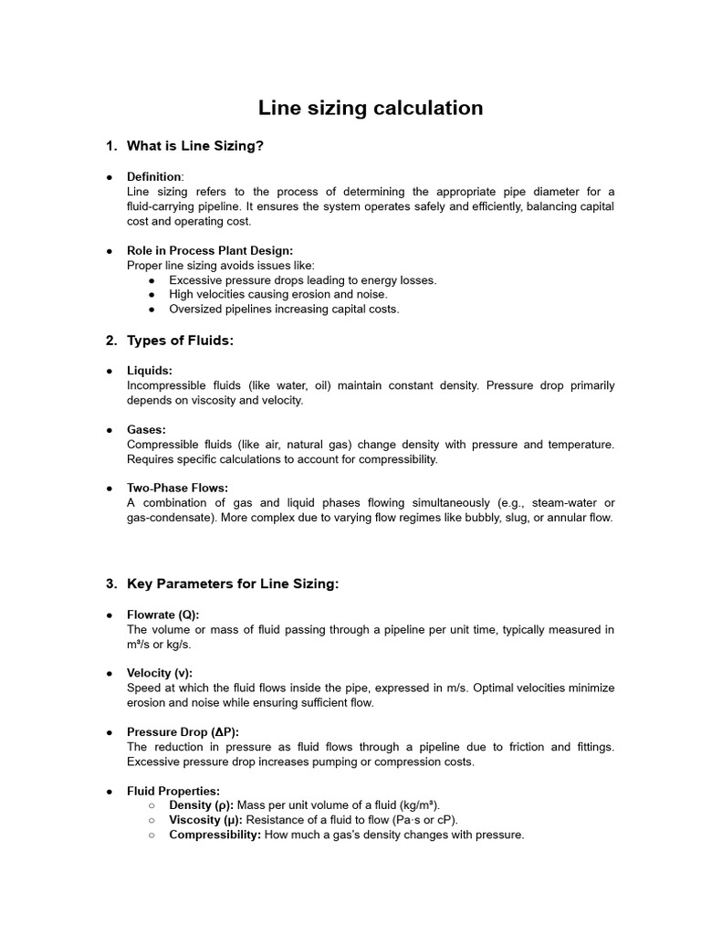 3. Key Parameters for Line Sizing: