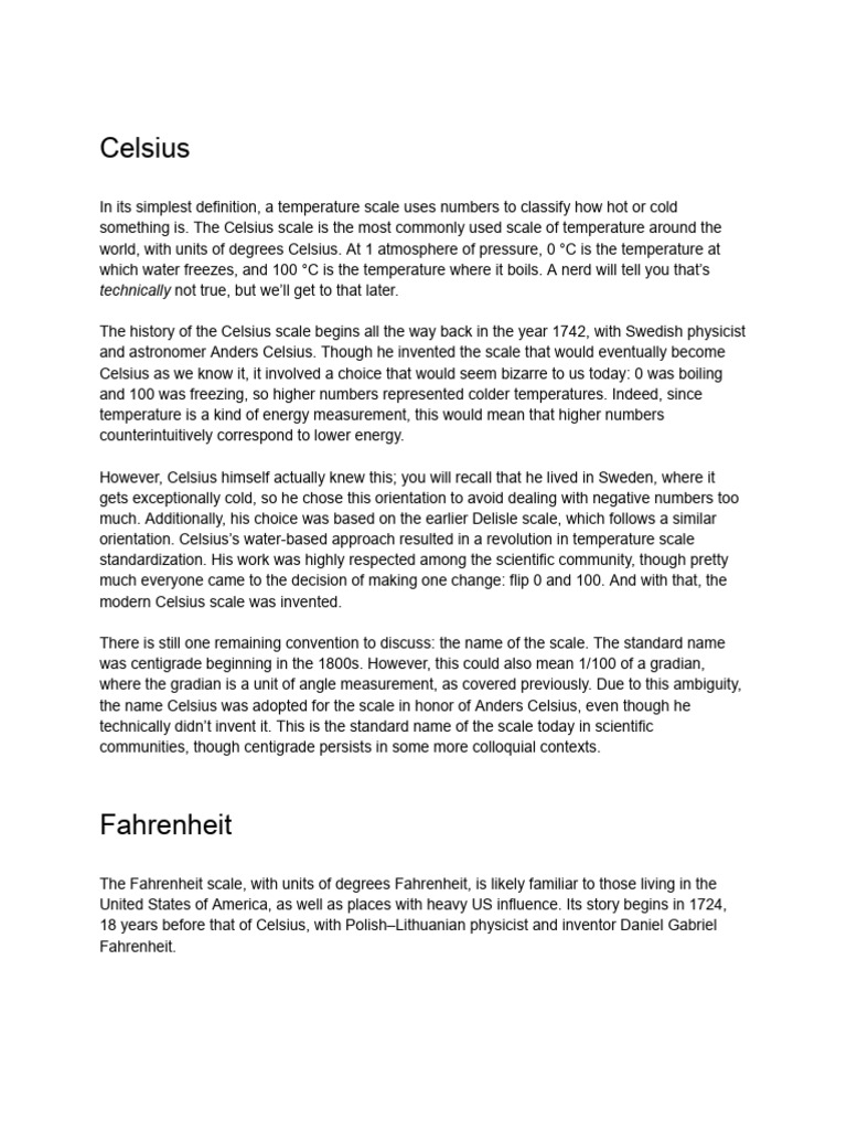 orientation. Celsius’s water-based approach resulted in a revolution in temperature scale