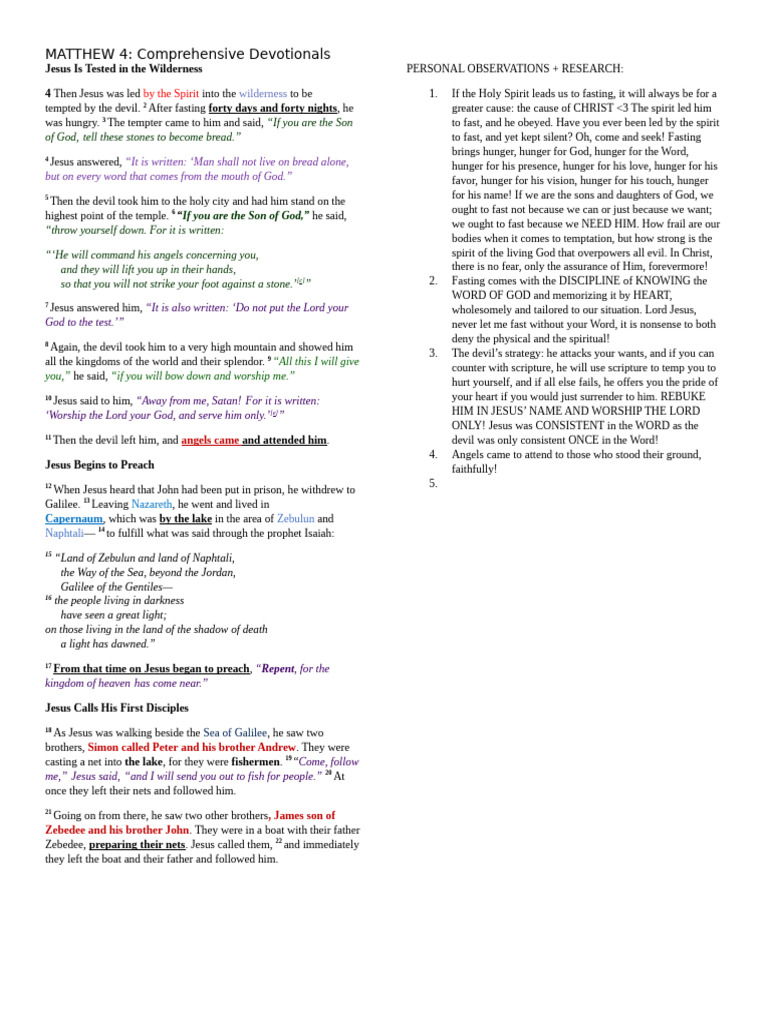 MATTHEW 4: Comprehensive Devotionals