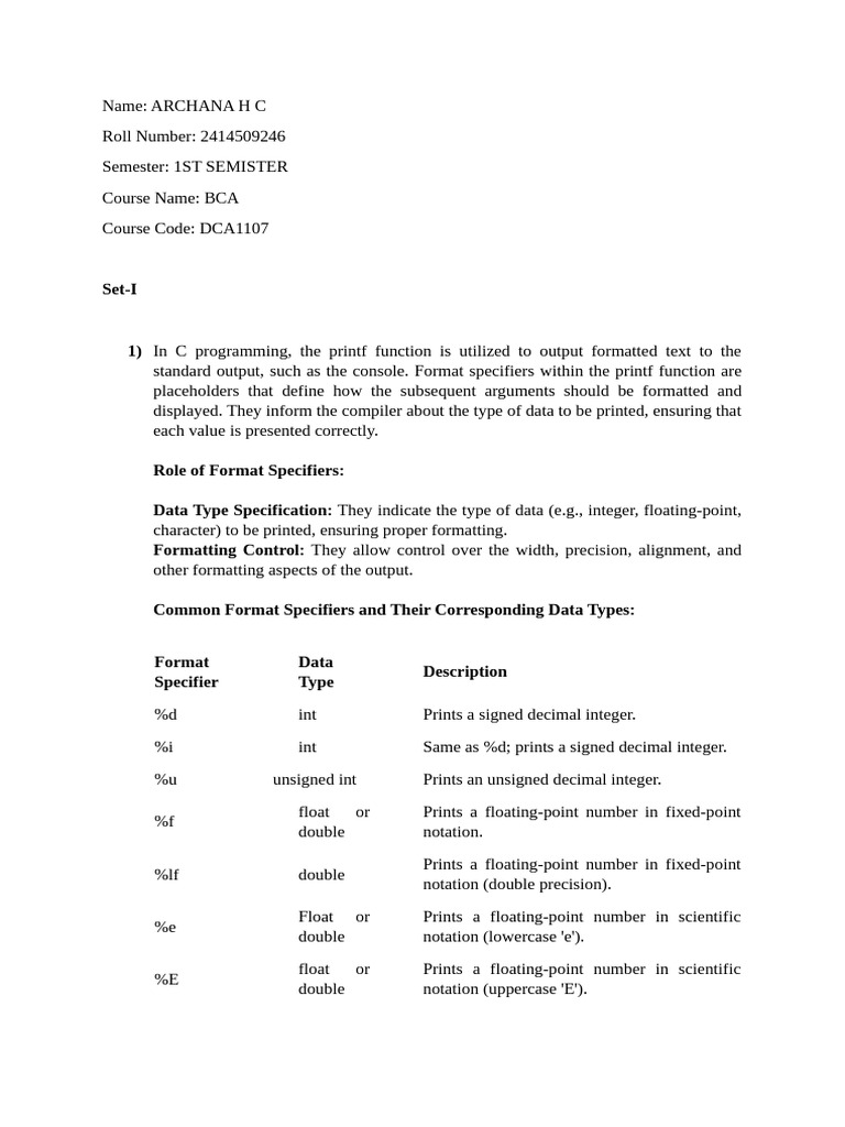 displayed. They inform the compiler about the type of data to be printed, ensuring that