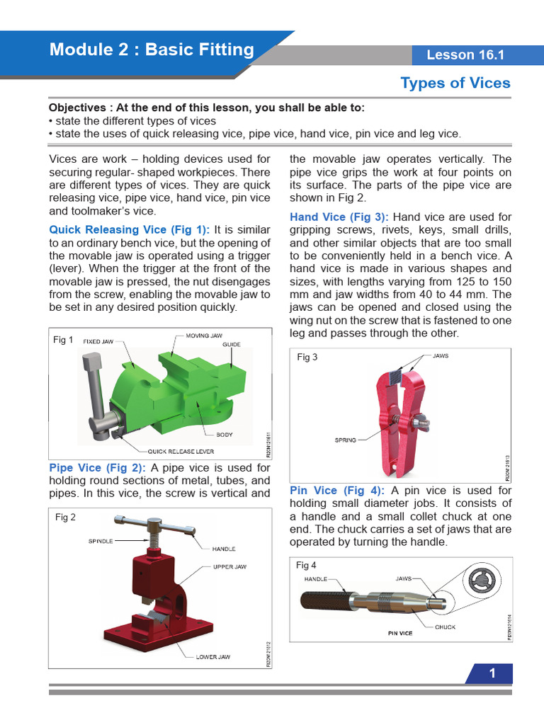 releasing vice, pipe vice, hand vice, pin vice shown in Fig 2.