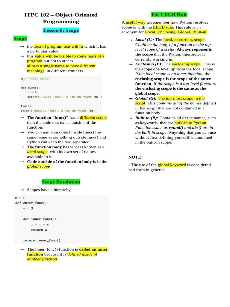 ITPC 102 – Object-Oriented The LEGB Rule
