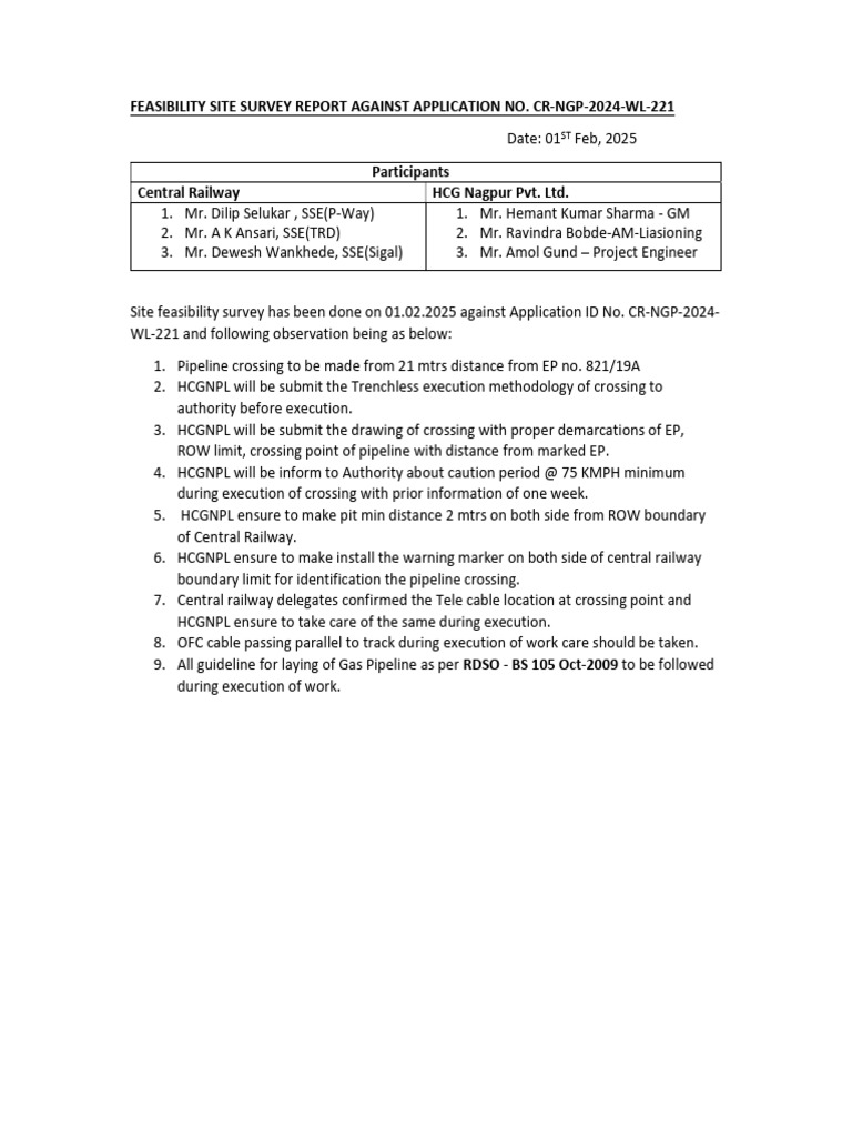 Site feasibility survey has been done on 01.02.2025 against Application ID No. CR-NGP-2024-