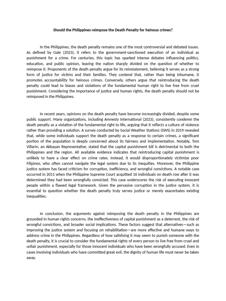 In conclusion, the arguments against reimposing the death penalty in the Philippines are
