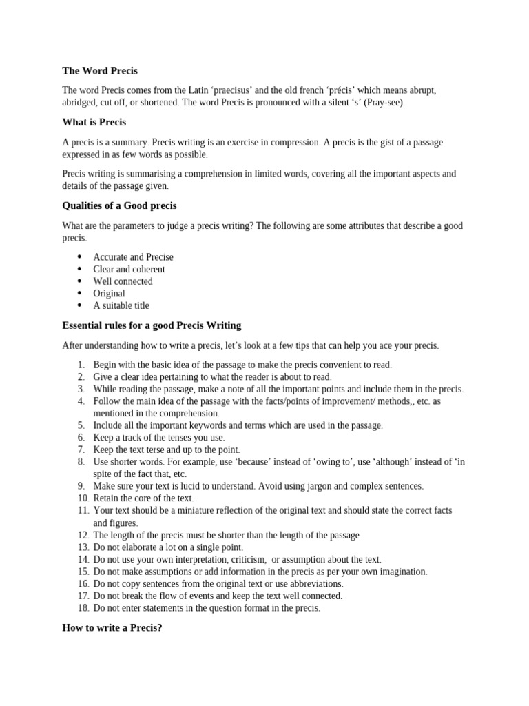 2. Precis writing is also used in companies for job descriptions, meeting highlights, etc.