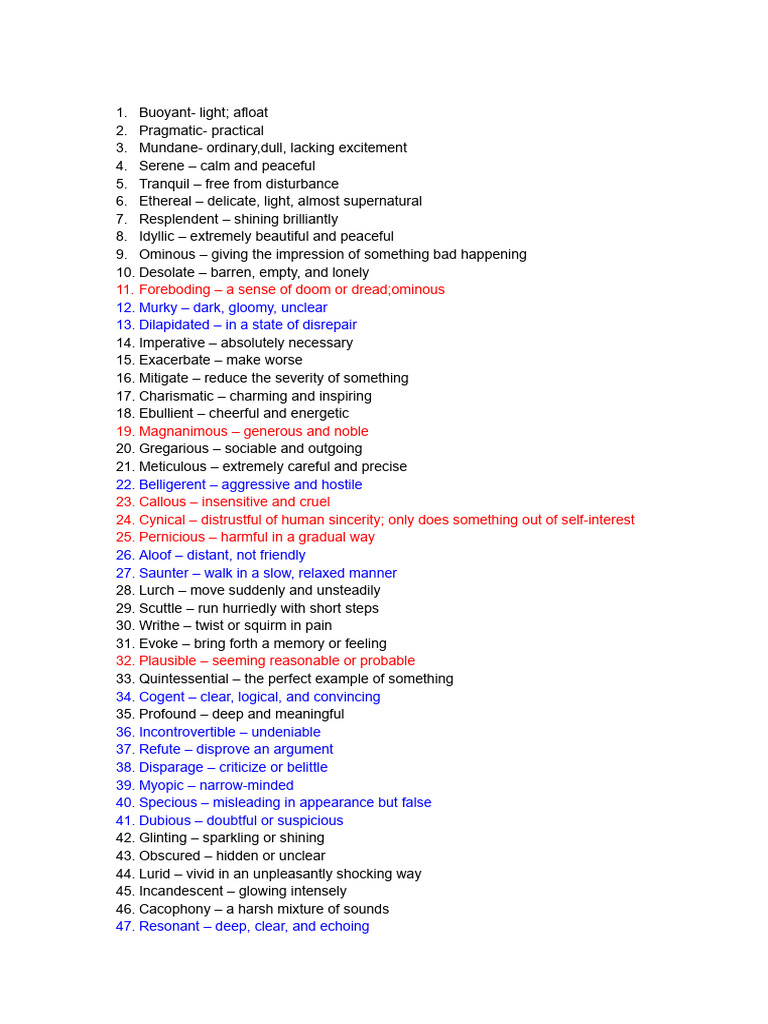 24.Cynical – distrustful of human sincerity; only does something out of self-interest