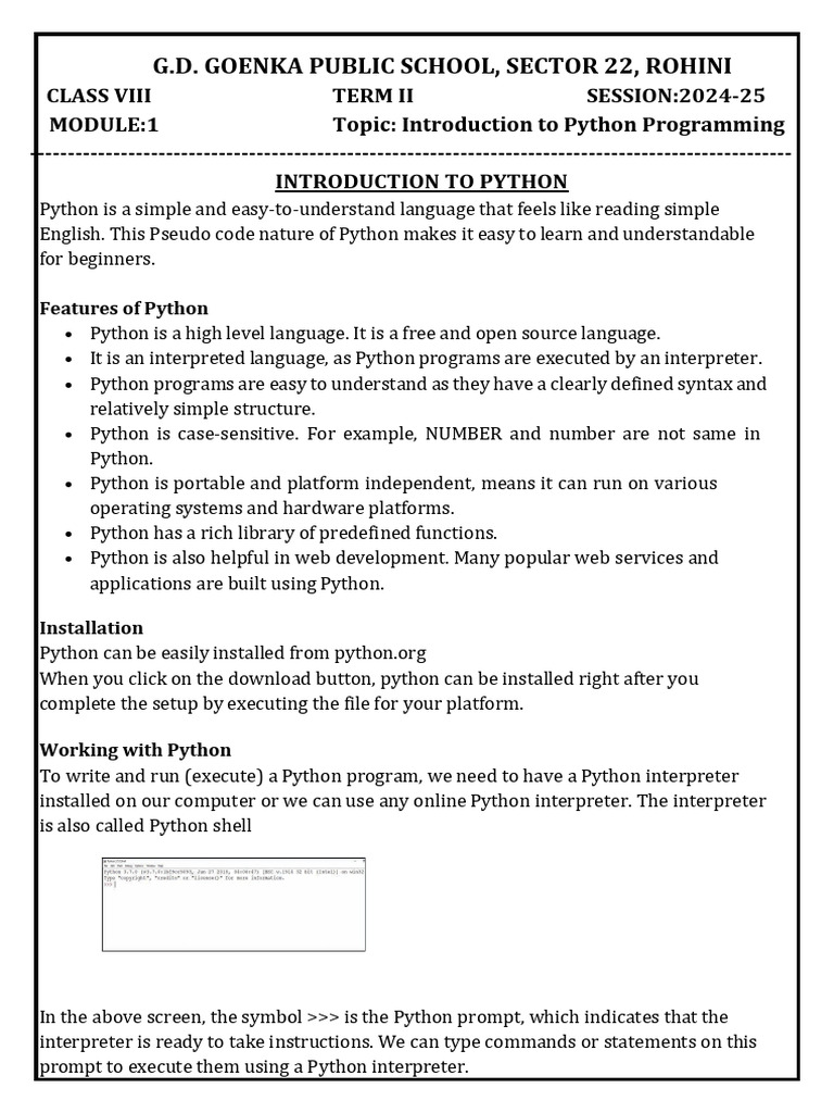 MODULE:1 Topic: Introduction to Python Programming