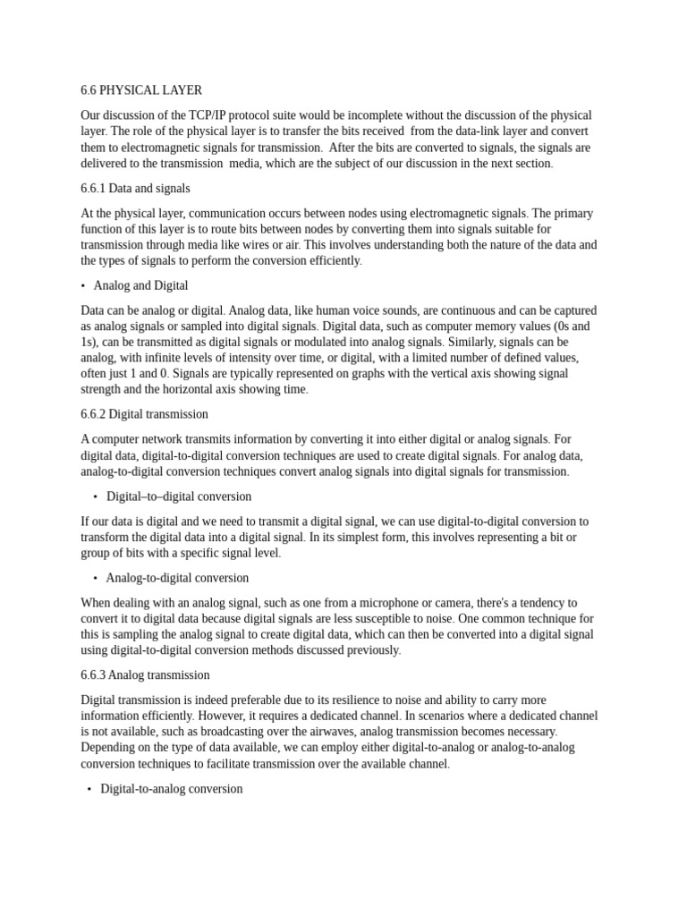 A computer network transmits information by converting it into either digital or analog signals. For