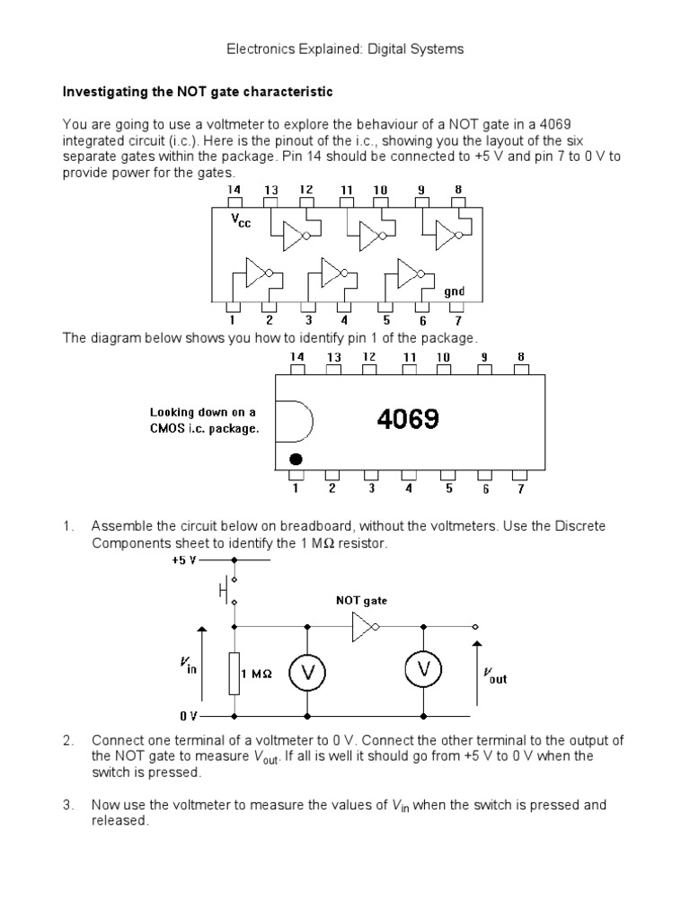 Electronics Explained: Digital Systems Investigating the NOT gate characteristic You are going to use a voltmeter to explore