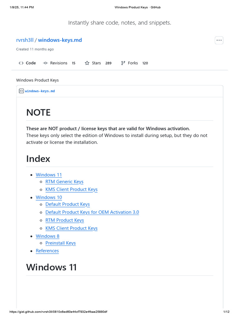 1/9/25, 11:44 PM Windows Product Keys · GitHub