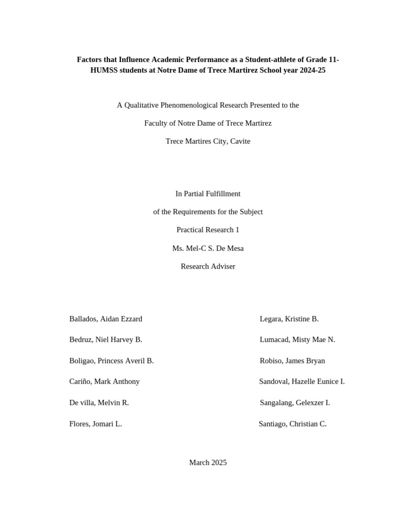 2024-2025 at Notre Dame of Trece Martirez. - Factors such as time management,