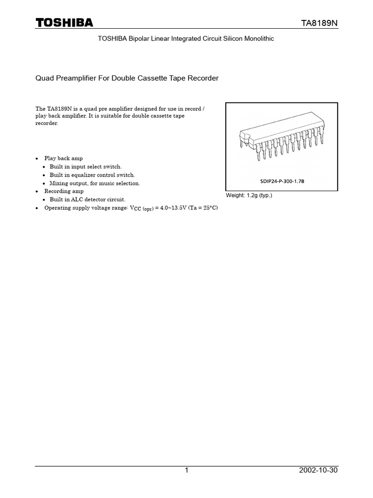 The TA8189N is a quad pre amplifier designed for use in record /