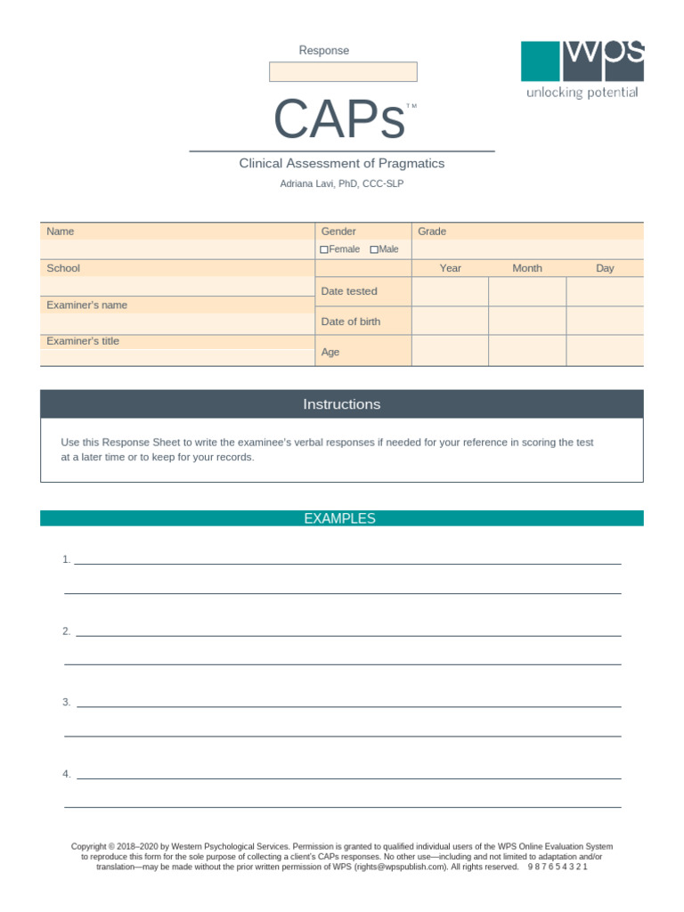 to reproduce this form for the sole purpose of collecting a client’s CAPs responses. No other use—including and not limited to adaptation and/or