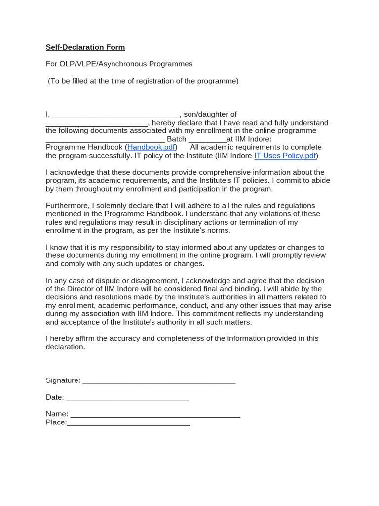 Self-Declaration Form