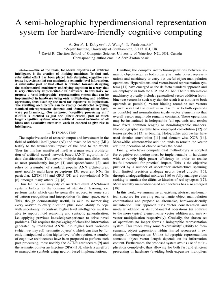 digital look-up tables), sensors, possibly even classical mi- [14] P. Kanerva, “Fully Distributed Representation,” Proceedings of 1997