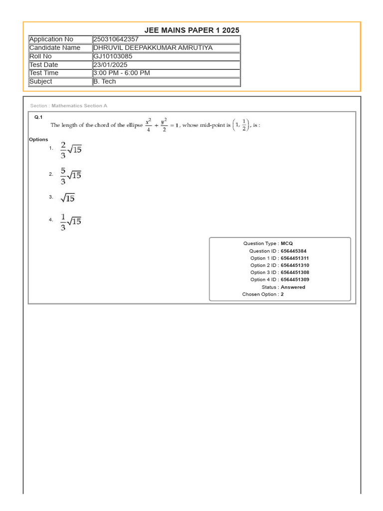 JEE MAINS PAPER 1 2025