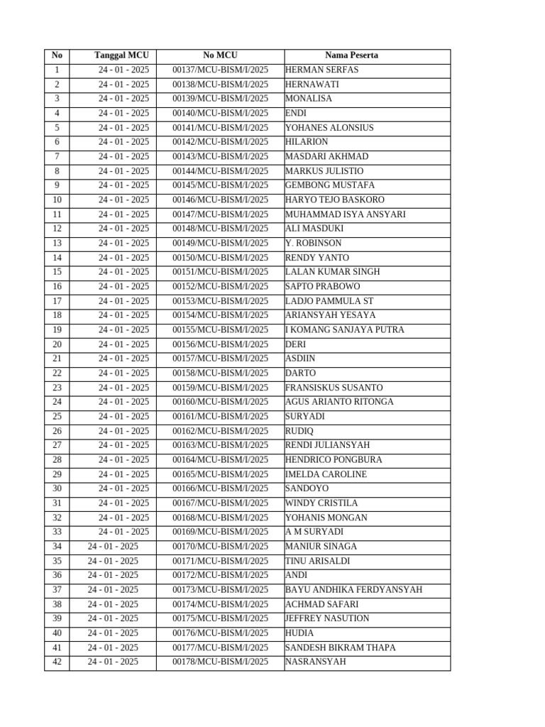 No Tanggal MCU No MCU Nama Peserta