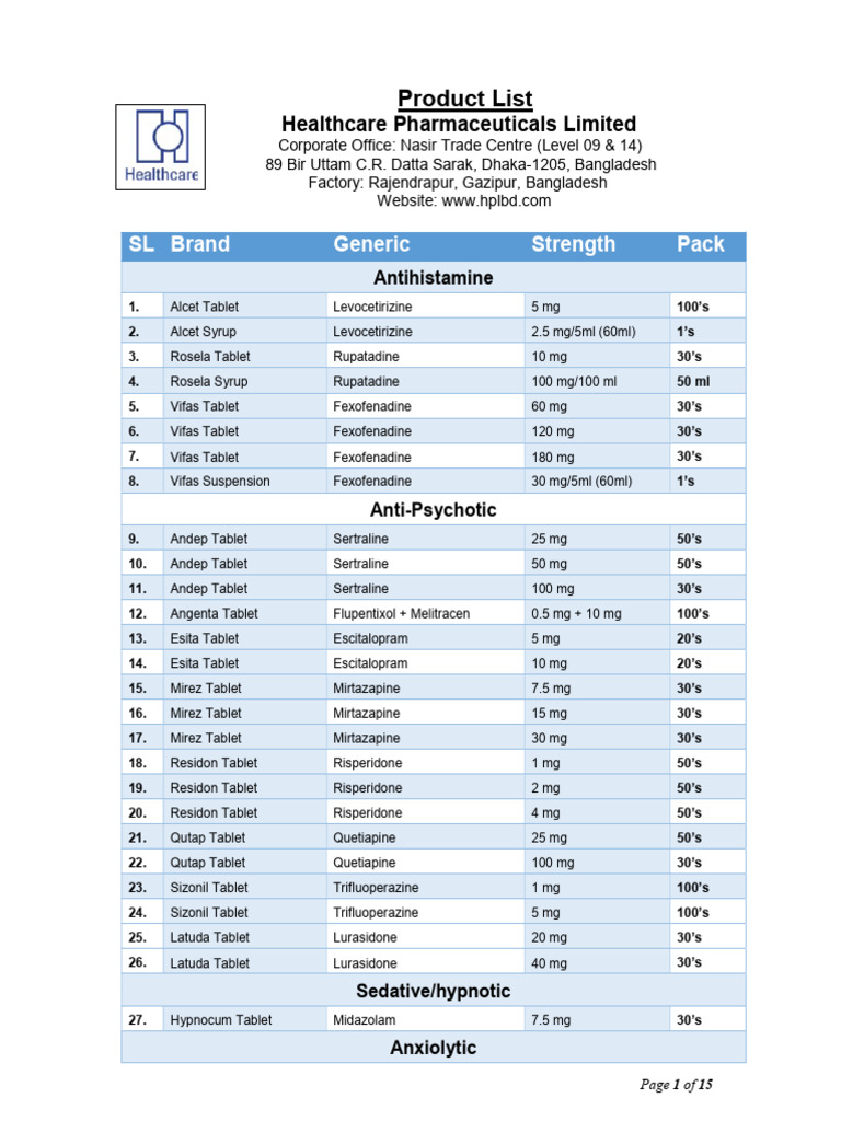 23. Sizonil Tablet Trifluoperazine 1 mg 100’s