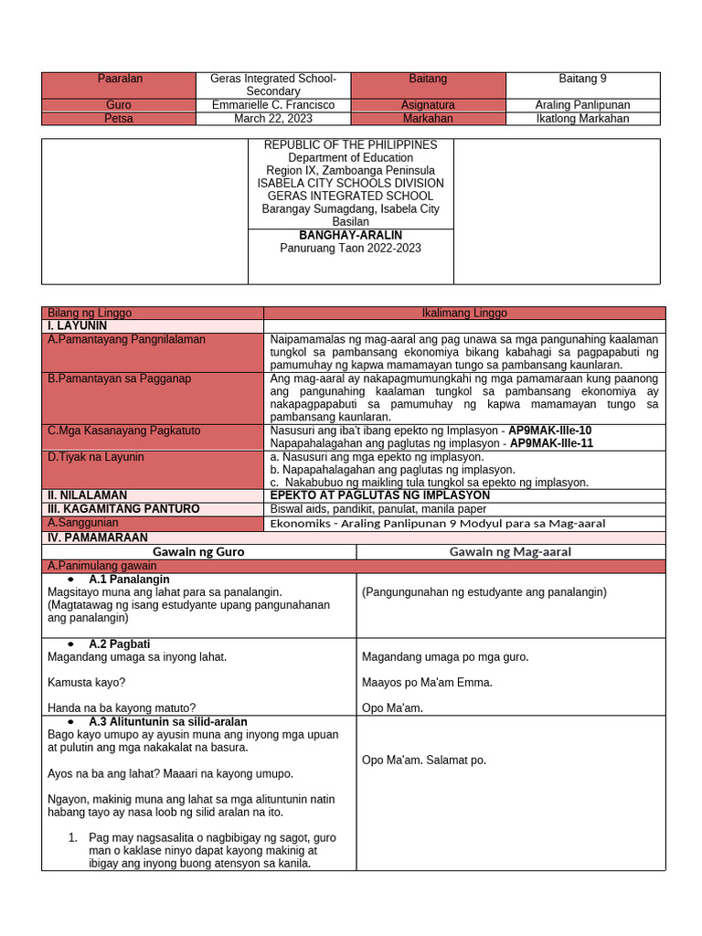 D.Tiyak na Layunin a. Nasusuri ang mga epekto ng implasyon.