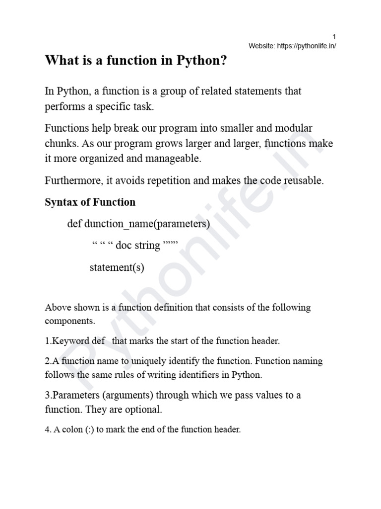 [Link] or more valid python statements that make up the function body.